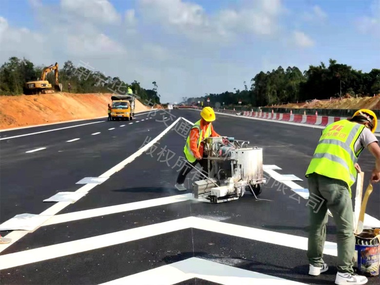 该涂料是一种固体粉状涂料,由高分子改性树脂、石油树脂、玻璃珠、颜料和填料组成。施工时需使用液化气加热涂料至熔融流动状态,涂料冷却固化形成标线。该涂料施工方便、干燥快(施工3分钟后可放行交通),可用于沥青和水泥混凝土路面标线。涂料颜色有白色、和黄色。